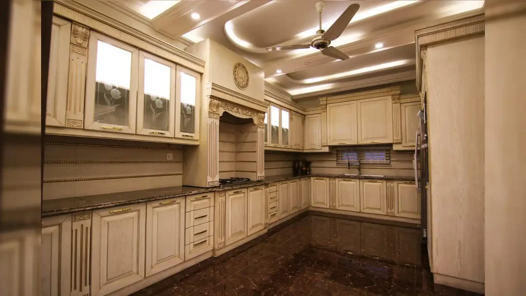 Modern Beyaz Lake U Şeklinde Mutfak Dolapları
