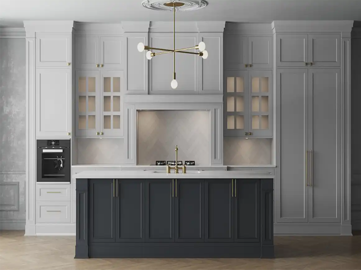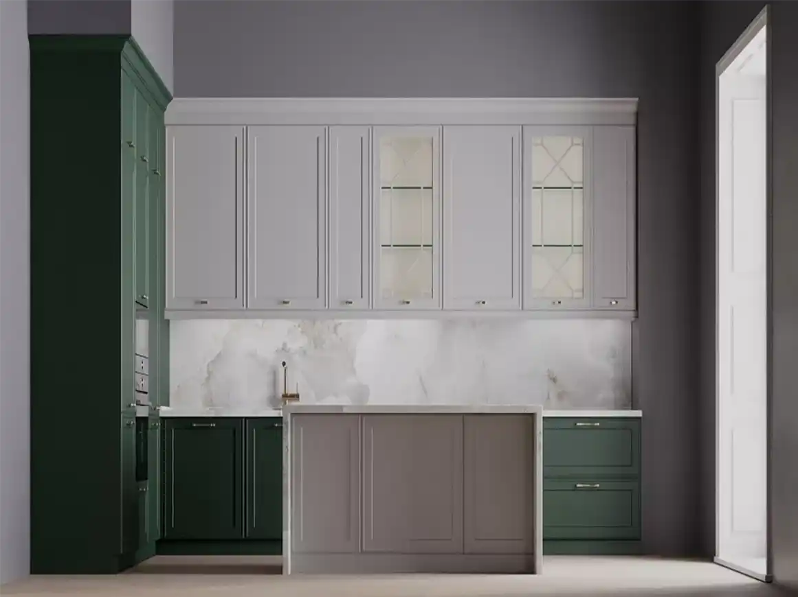 Düz panel dolap kapıları, aynı zamanda levha dolap kapıları olarak da bilinir, herhangi bir kenar çıtası veya eğim içermez. Düz panel kapı stillerinin aksine, mutfak dolap kapı panelleri tipik olarak dolap çerçevesi ve orta panel yapısı tarafından oluşturulan üç boyutlu bir tasarıma sahiptir. Bu üç boyutlu tasarım, bu dolapların geleneksel görünümünü vurgular. Çağdaş bir görünüm arıyorsanız, düz panel kapılı mutfak dolapları idealdir.